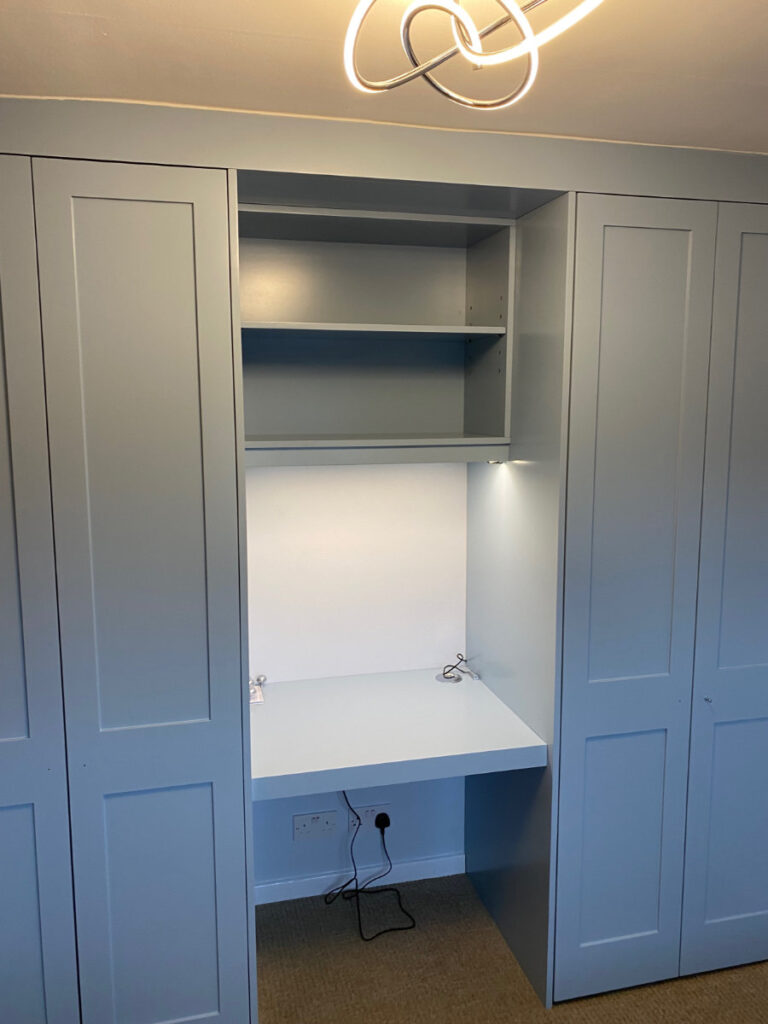 We can also design and build drawers, shoe storage, tall narrow wardrobes for long dresses as well as fitted furniture for any other awkward space or angle you may have in your room.
