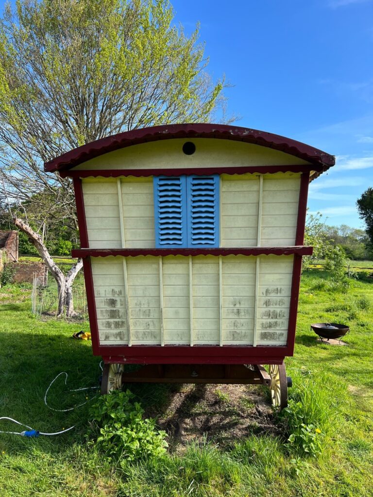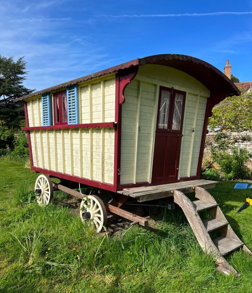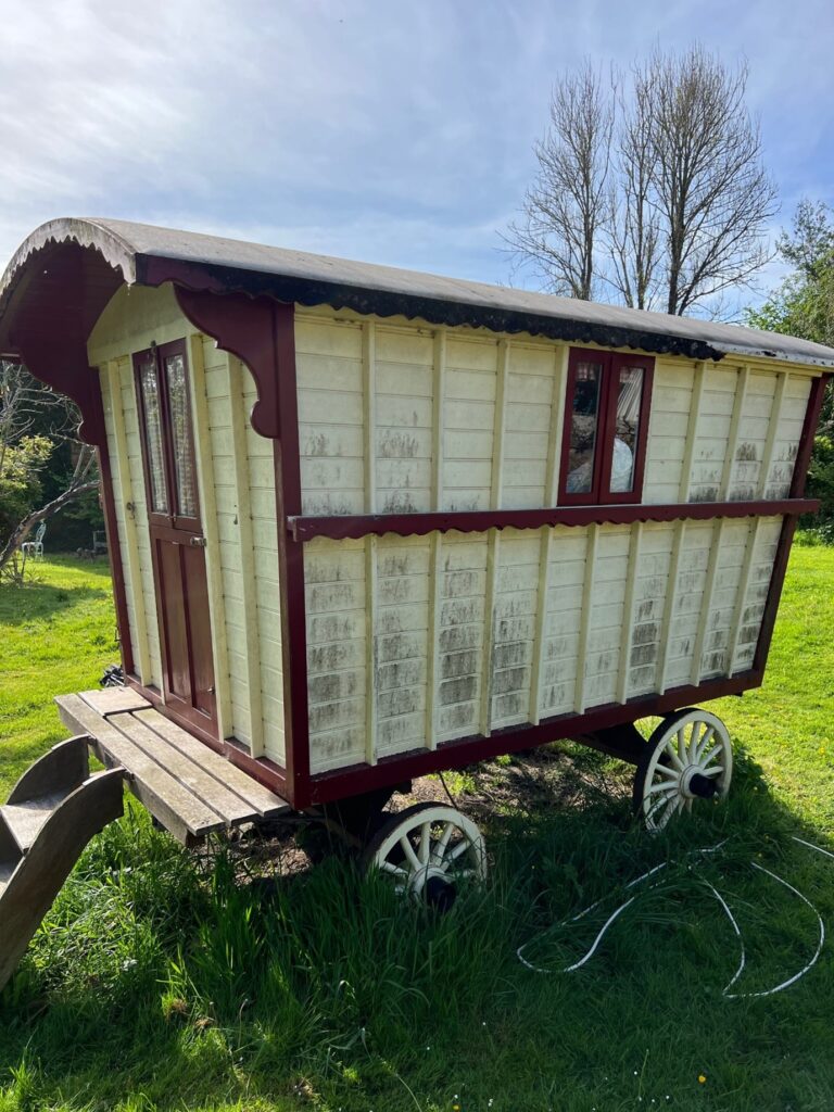 This beautiful old “gypsy caravan” has now been given a complete new lease of life and a great place for the grandchildren to play. They love the fact that it now looks like a sylvanian families toy!